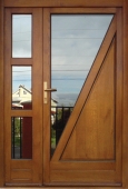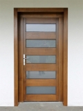 Usile exterioare de intrare din lemn stratificat se realizeaza pe baza de comanda, in functie de solicitarile fiecarui client in parte. Acestea sunt confectionate din lemn natural, triplu-stratificat, rasinos sau stejar, la care se adauga feroneria cu inchidere in mai multe puncte si finisajele ecologice pe baza de apa, proiectate pentru a rezista la radiatii UV si alti factori meteorologici. Prin posibilitatea alegerii modelului usii, a tipului de sticla ornamentala si a nuantei de finisaj, usile exterioare de intrare din lemn stratificat ofera casei Dvs. o estetica deosebita, in acelasi timp asigurand un grad ridicat de siguranta si izolare termica si fonica.